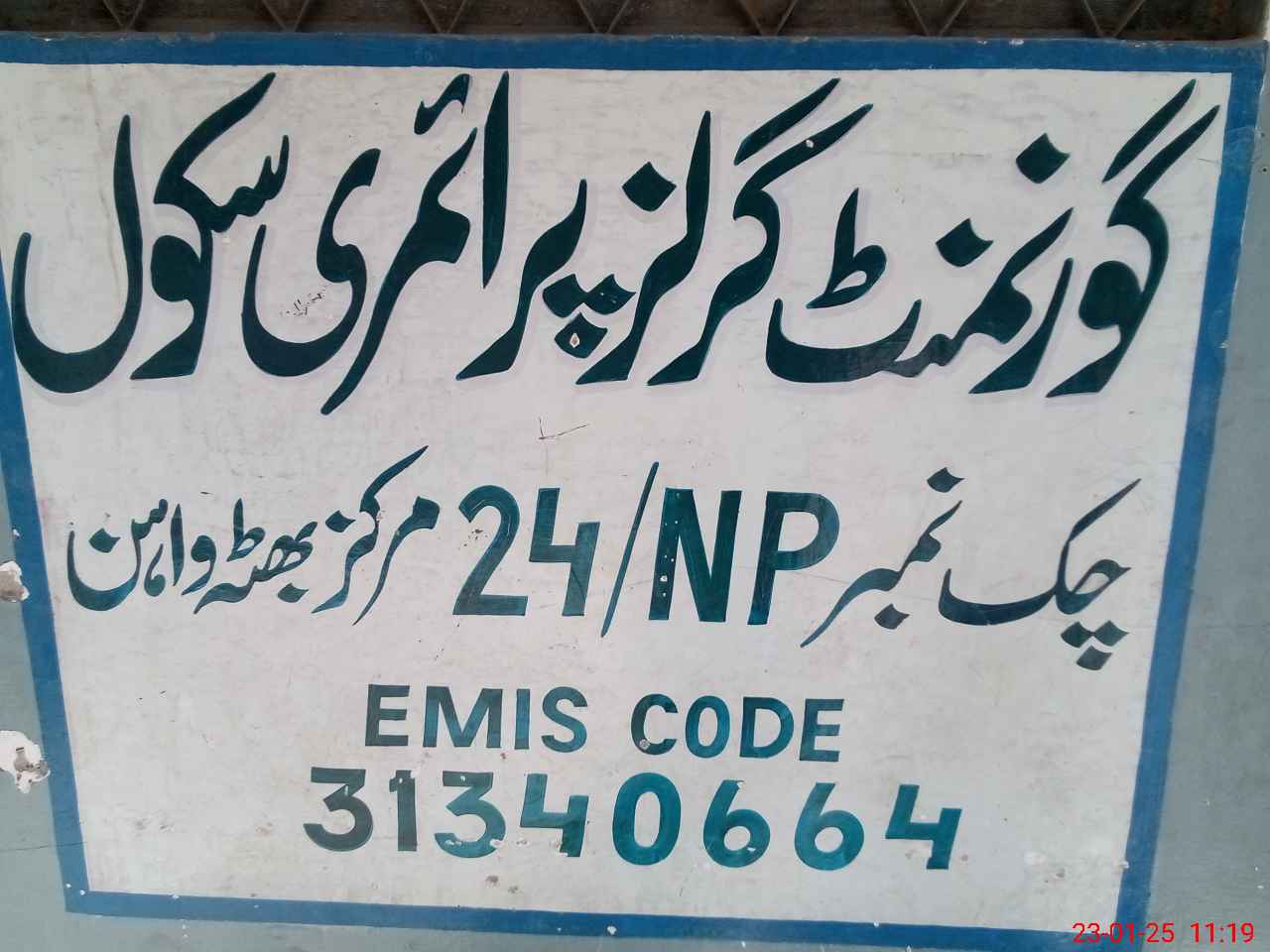 | EMIS Code: 31340664 | Name of School: GGPS CHAK NO.24/NP | |||