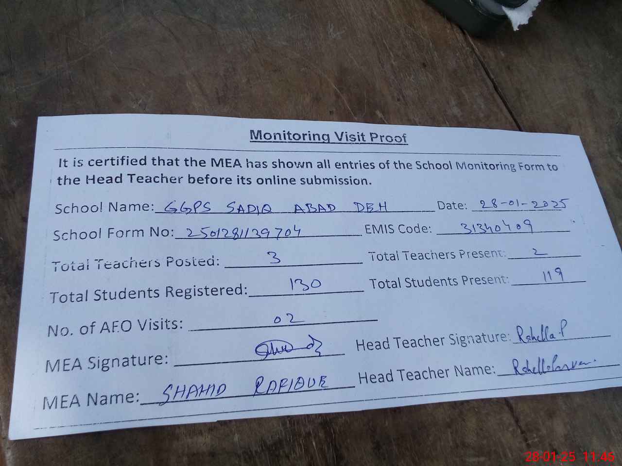 | EMIS Code: 31340409 | Name of School: GGPS SADIQ ABAD DEH | |||