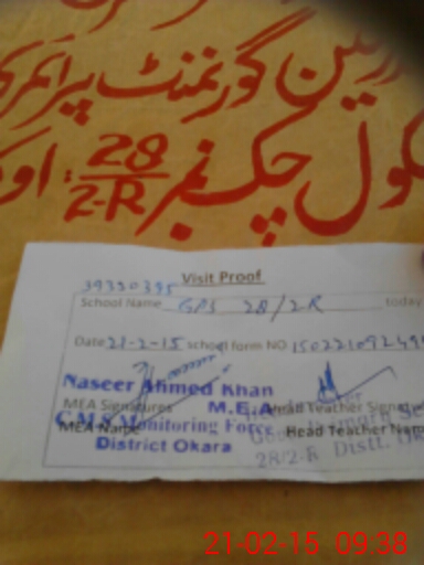 | EMIS Code: 39330395 | Name of School: GPS CHAK NO. 28/2-R | |||
