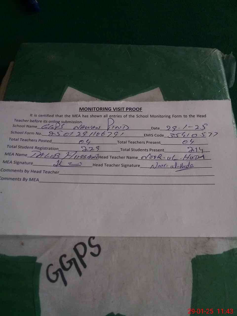 | EMIS Code: 35410577 | Name of School: GGPS NAWAN PIND | |||