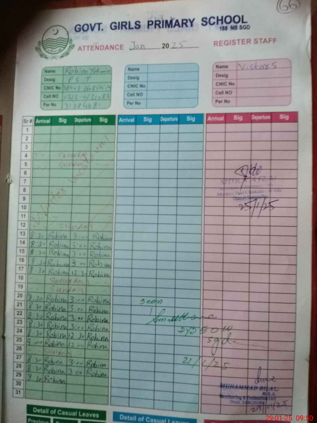 | Name: RO**** YA**** Designation: (School Headmaster's/Headmistress's) PST Phone/Cell Number: 03**** |