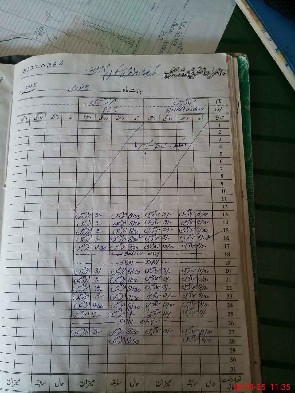 | Name: AB**** NA**** Designation: (School Headmaster's/Headmistress's) PST Phone/Cell Number: 03**** |