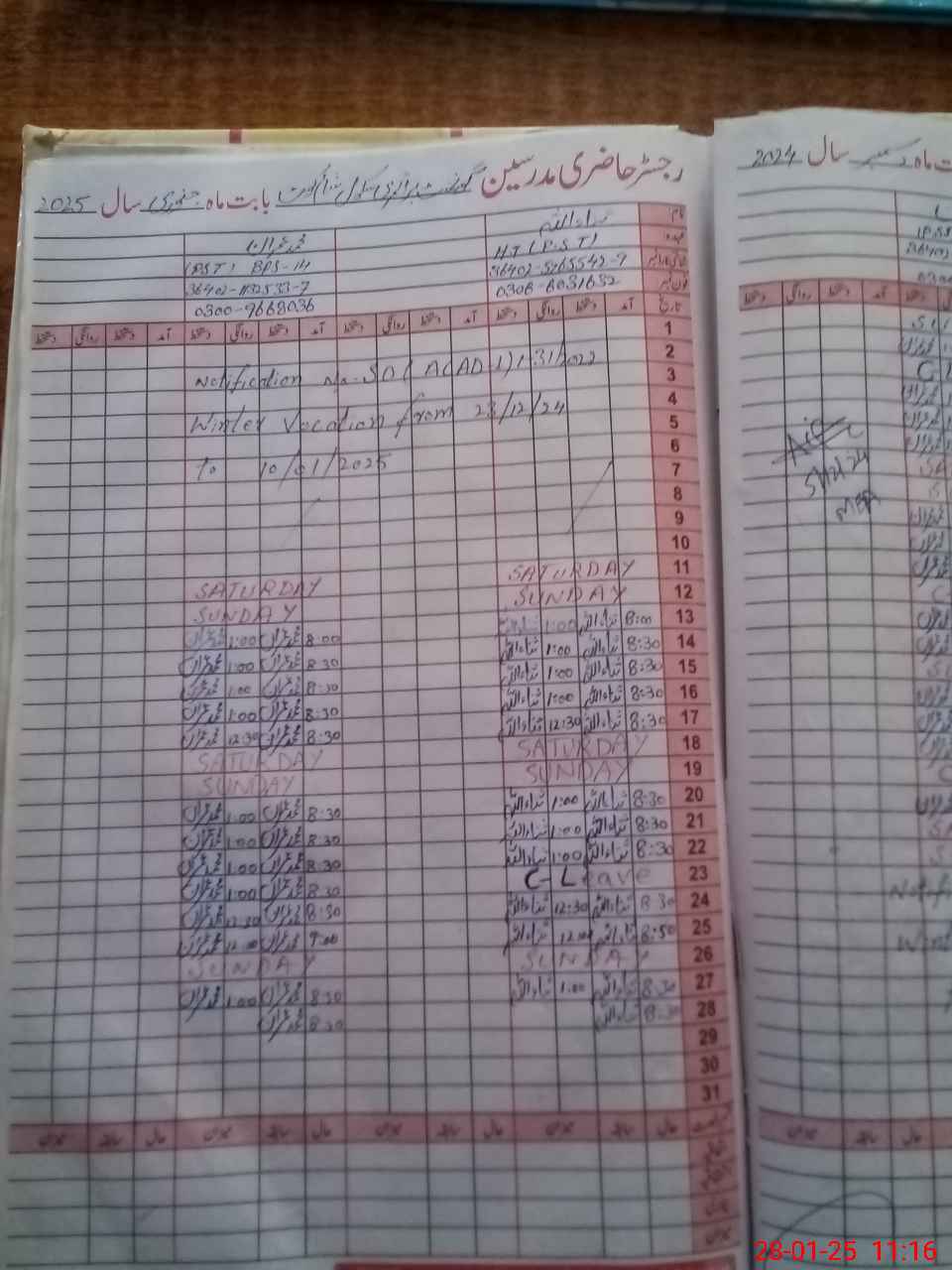 | CNIC | Full Name | Designation | R/C | Absence During Last Calender Month |