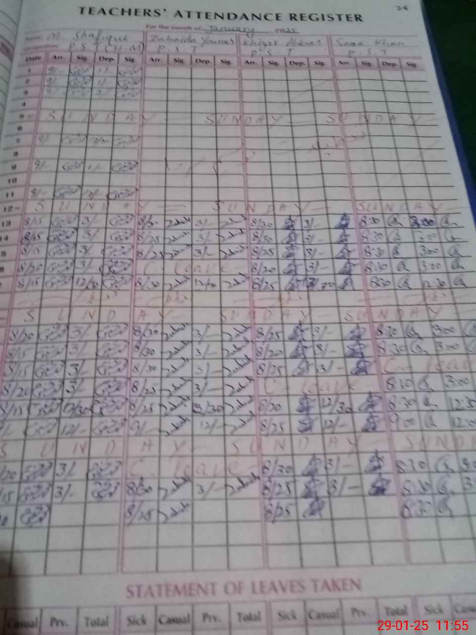 | CNIC | Full Name | Designation | R/C | Absence During Last Calender Month |