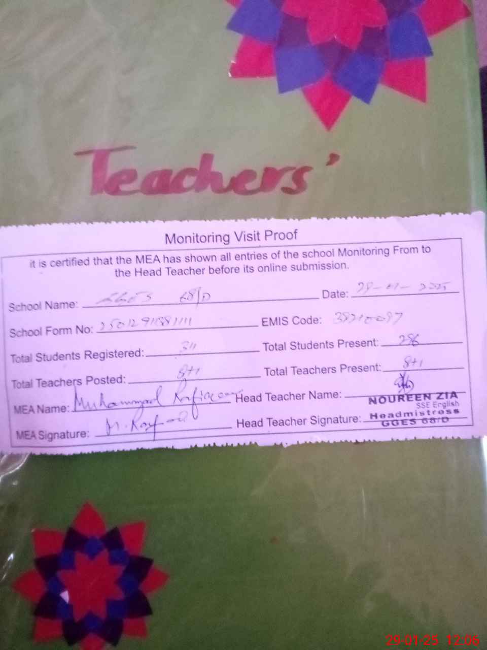 | EMIS Code: 39210057 | Name of School: GGES 68 D PO CHWANT | |||