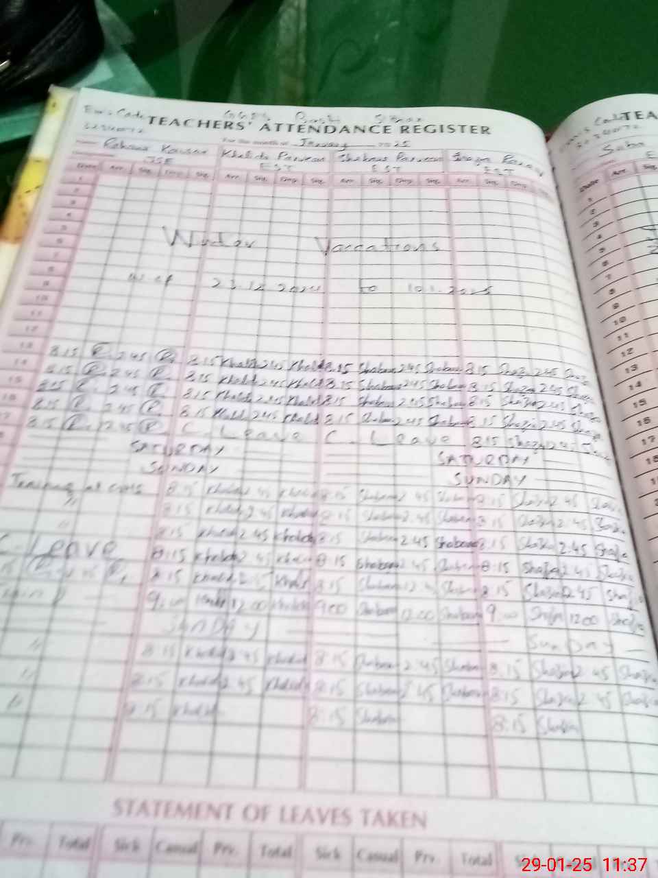| Leave | Duty | Absent | Maternity | Medical | Ex- Pak |