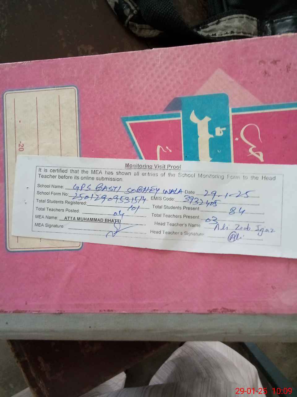 | EMIS Code: 39320405 | Name of School: GPS BASTI SOBHEY WALA | |||