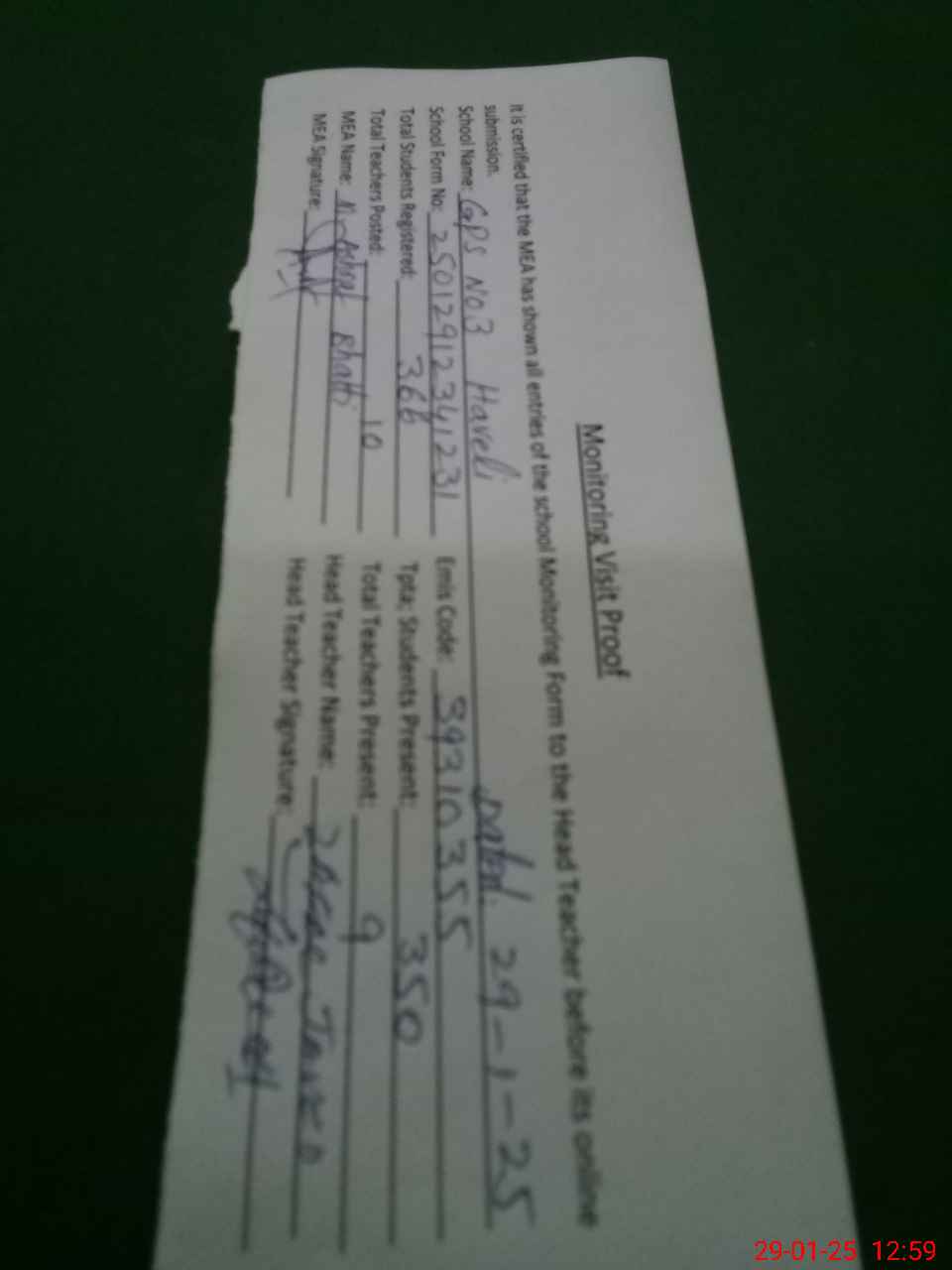 | EMIS Code: 39310355 | Name of School: GPS NO 3 HAVELI | |||