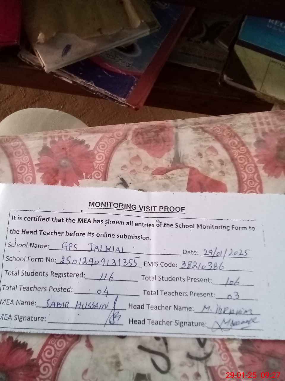 | EMIS Code: 38210386 | Name of School: GPS DERA JALKIAL | |||