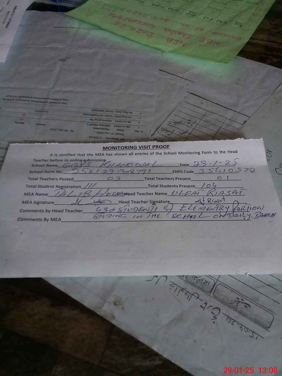 | EMIS Code: 35410578 | Name of School: GGES KHANO WALA | |||