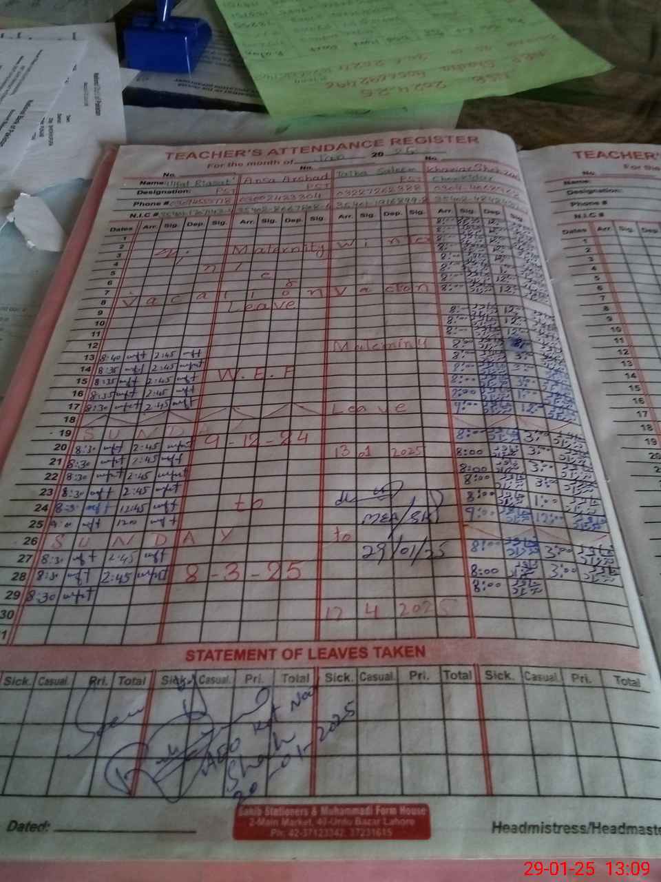 | Name: UL**** RI**** Designation: (School Headmaster's/Headmistress's) PST Phone/Cell Number: 03**** |