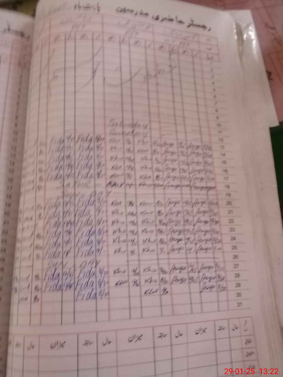 | CNIC | Full Name | Designation | R/C | Absence During Last Calender Month |