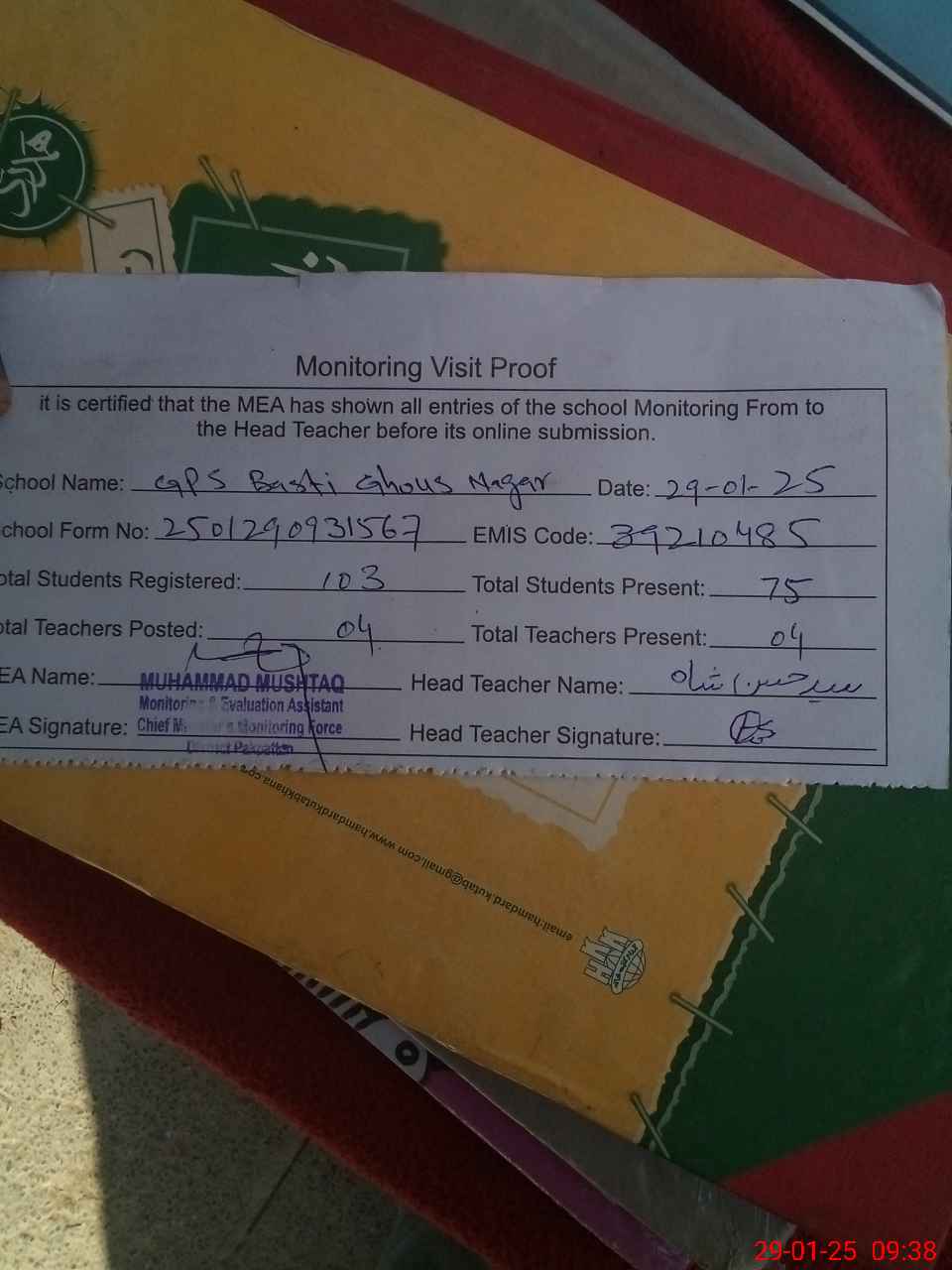 | EMIS Code: 39210485 | Name of School: GPS BASTI GHOUS NAGAR P/O PAKPATTAN | |||