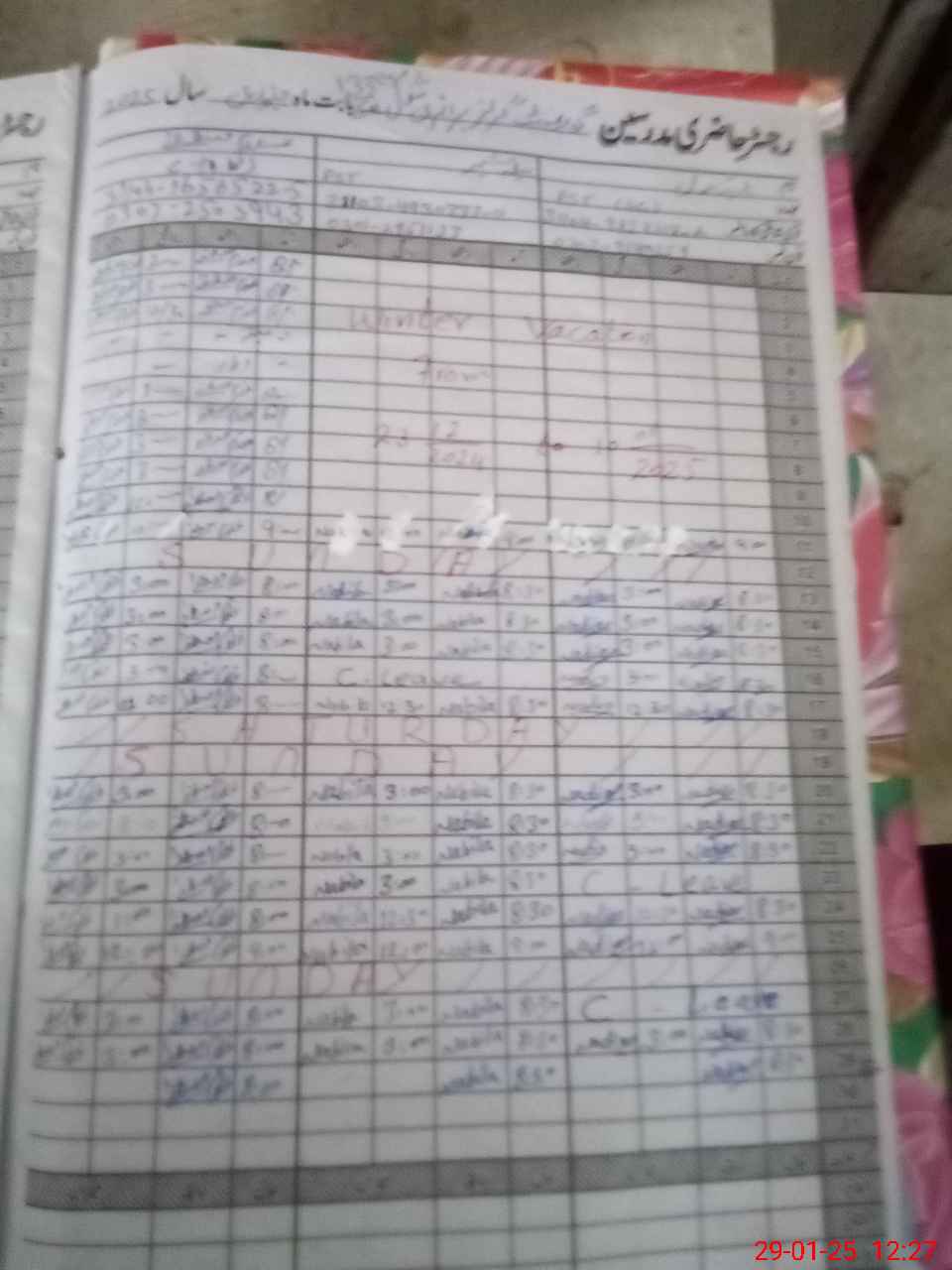 | CNIC | Full Name | Designation | R/C | Absence During Last Calender Month |