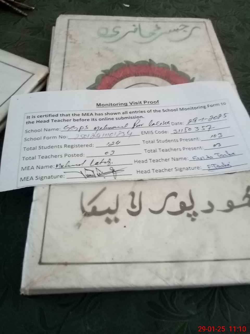 | EMIS Code: 31150357 | Name of School: GGPS MEHMOOD PUR LALAKEKA | |||