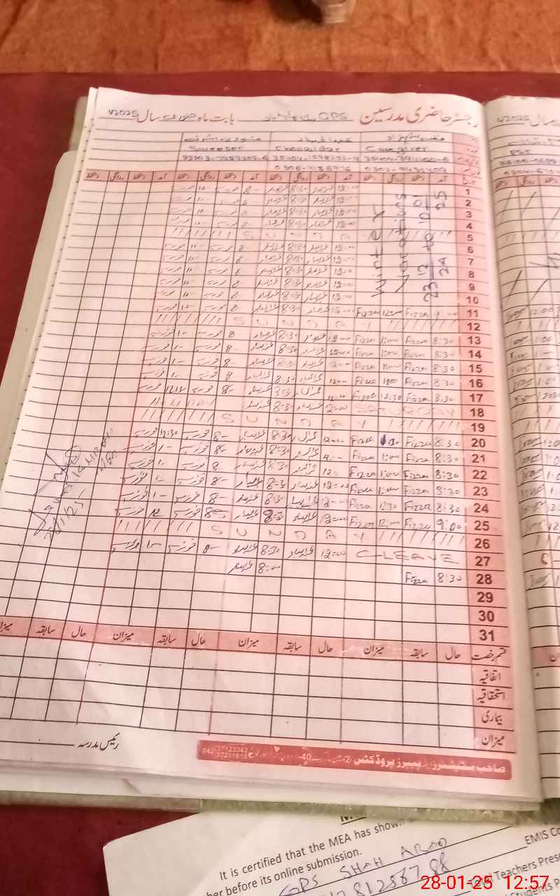 | Attendance Register | Head Teacher | MEA with School | Visit Proof |