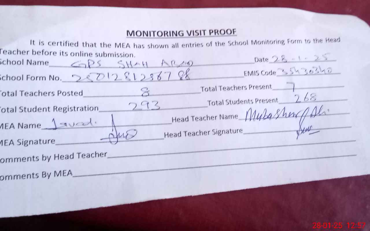 | EMIS Code: 35430340 | Name of School: GPS SHAH ABAD | |||