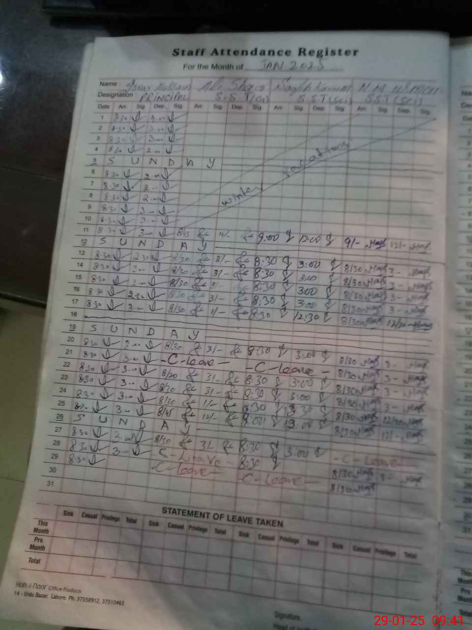 | Name: IS**** HU**** Designation: (School Headmaster's/Headmistress's) PRINCIPAL Phone/Cell Number: 03**** |