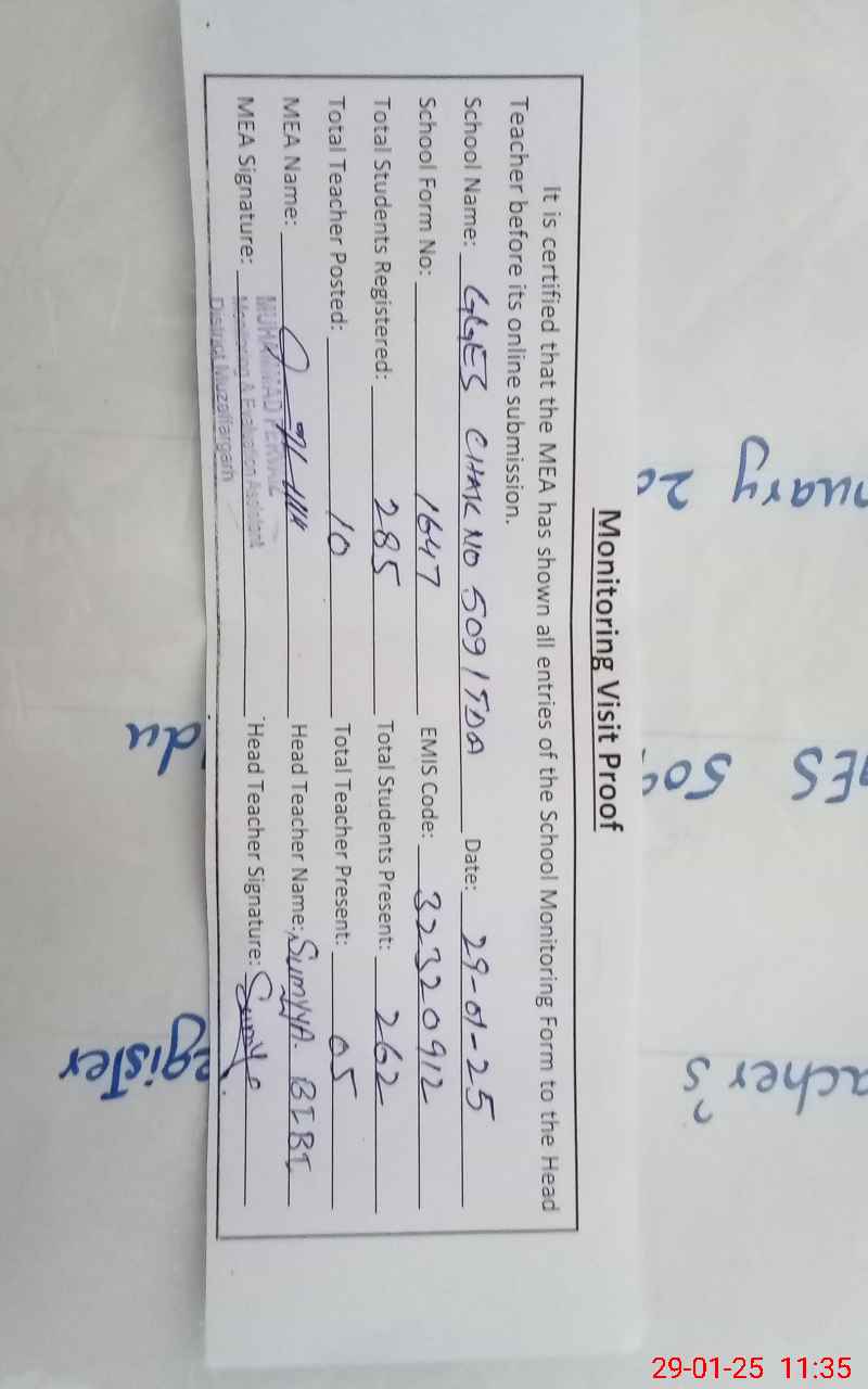 | EMIS Code: 32320912 | Name of School: GGES CHAK.NO. 509/TDA | |||