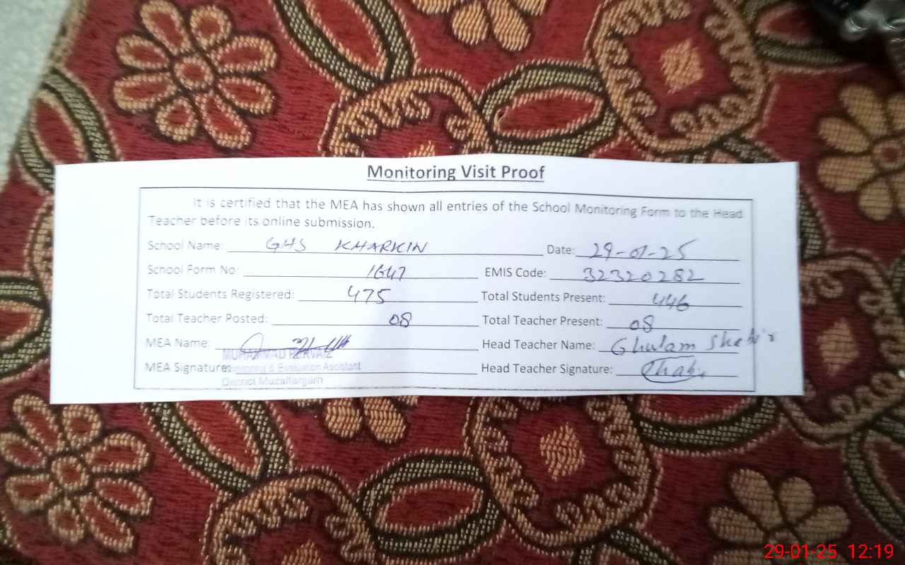 | EMIS Code: 32320282 | Name of School: GHS KHARKIN | |||