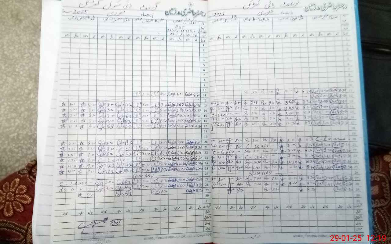| CNIC | Full Name | Designation | R/C | Absence During Last Calender Month |