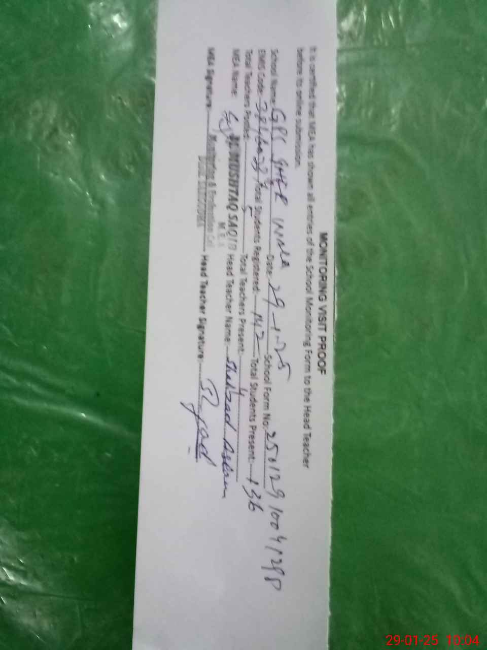 | Attendance Register | Head Teacher | MEA with School | Visit Proof |