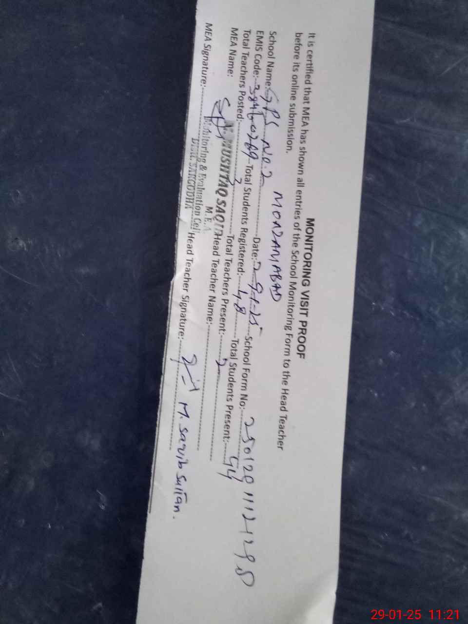 | EMIS Code: 38460269 | Name of School: GPS NO.2 MOAZAM ABAD | |||