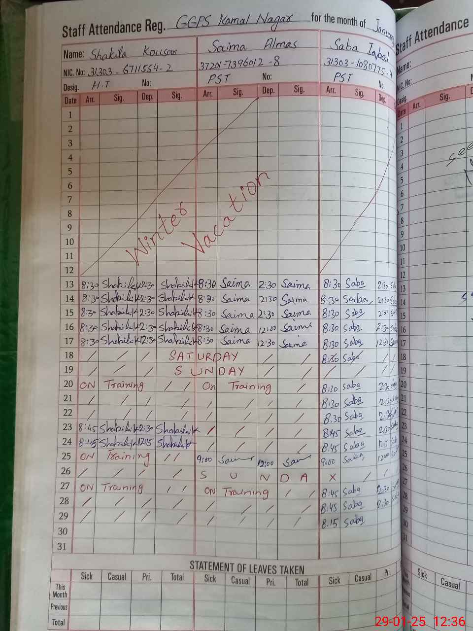 | 31**** | Ay**** Mu**** | 2 | 0 | 0 | 31 | 0 | 0 | 0 | 0 | 0 | 0 | Absent (Un-Authorized) | |