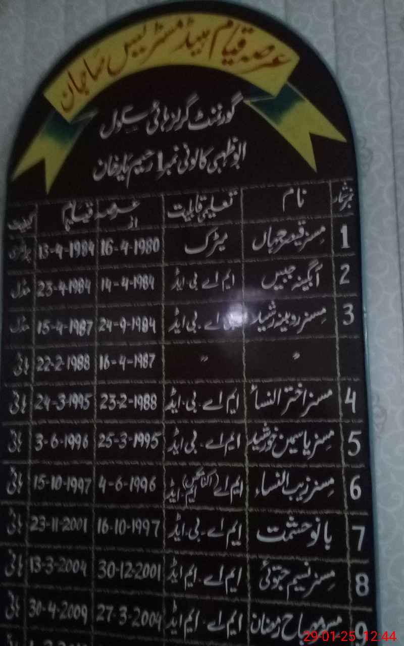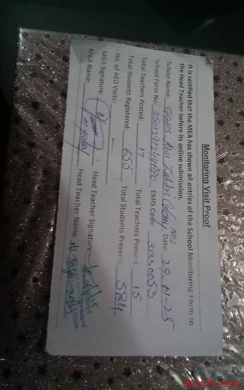 | EMIS Code: 31330053 | Name of School: GGHS ABU ZAHBI COLONY NO 1 | |||