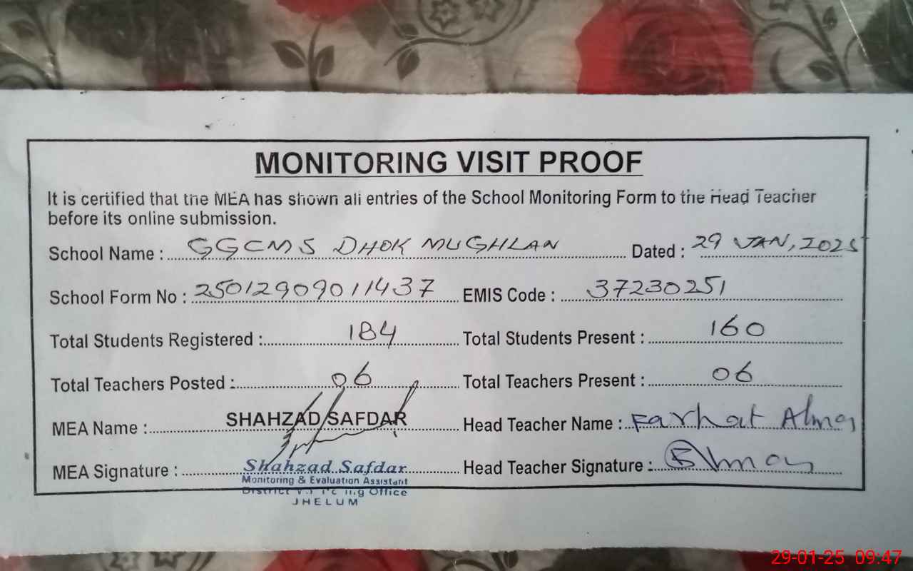 | EMIS Code: 37230251 | Name of School: GGCMS DHOK MUGHLAN | |||