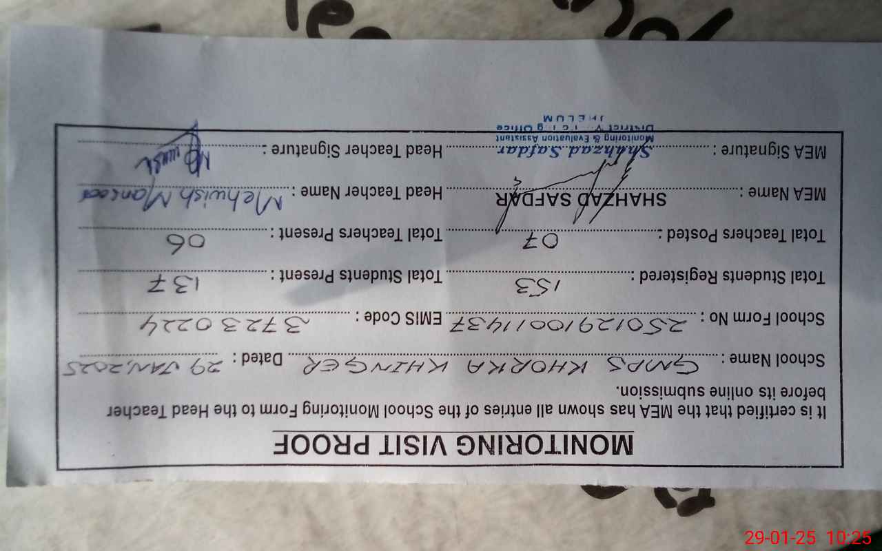 | EMIS Code: 37230224 | Name of School: GMPS KHORKA KHINGER | |||