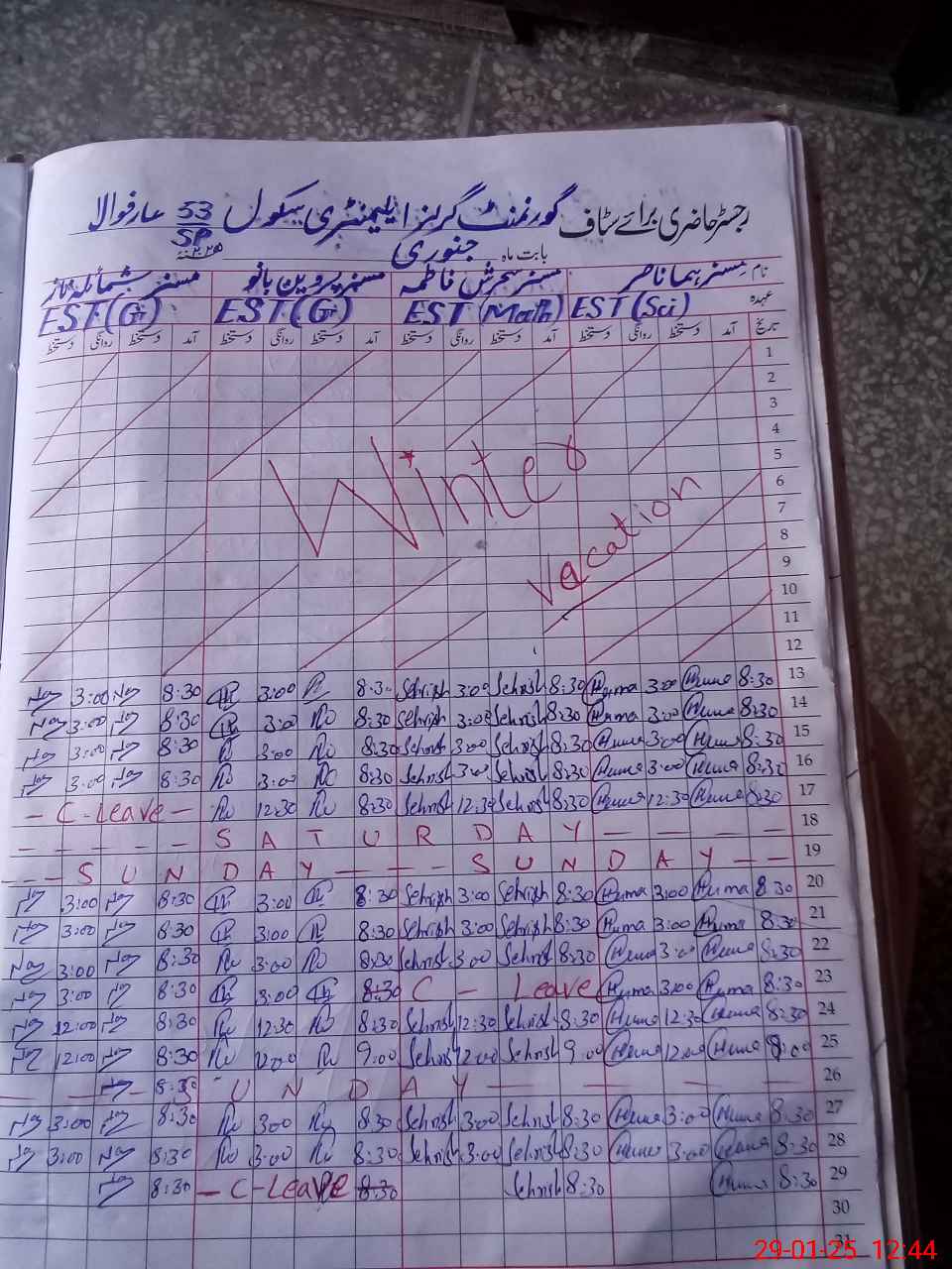 | Leave | Duty | Absent | Maternity | Medical | Ex- Pak |