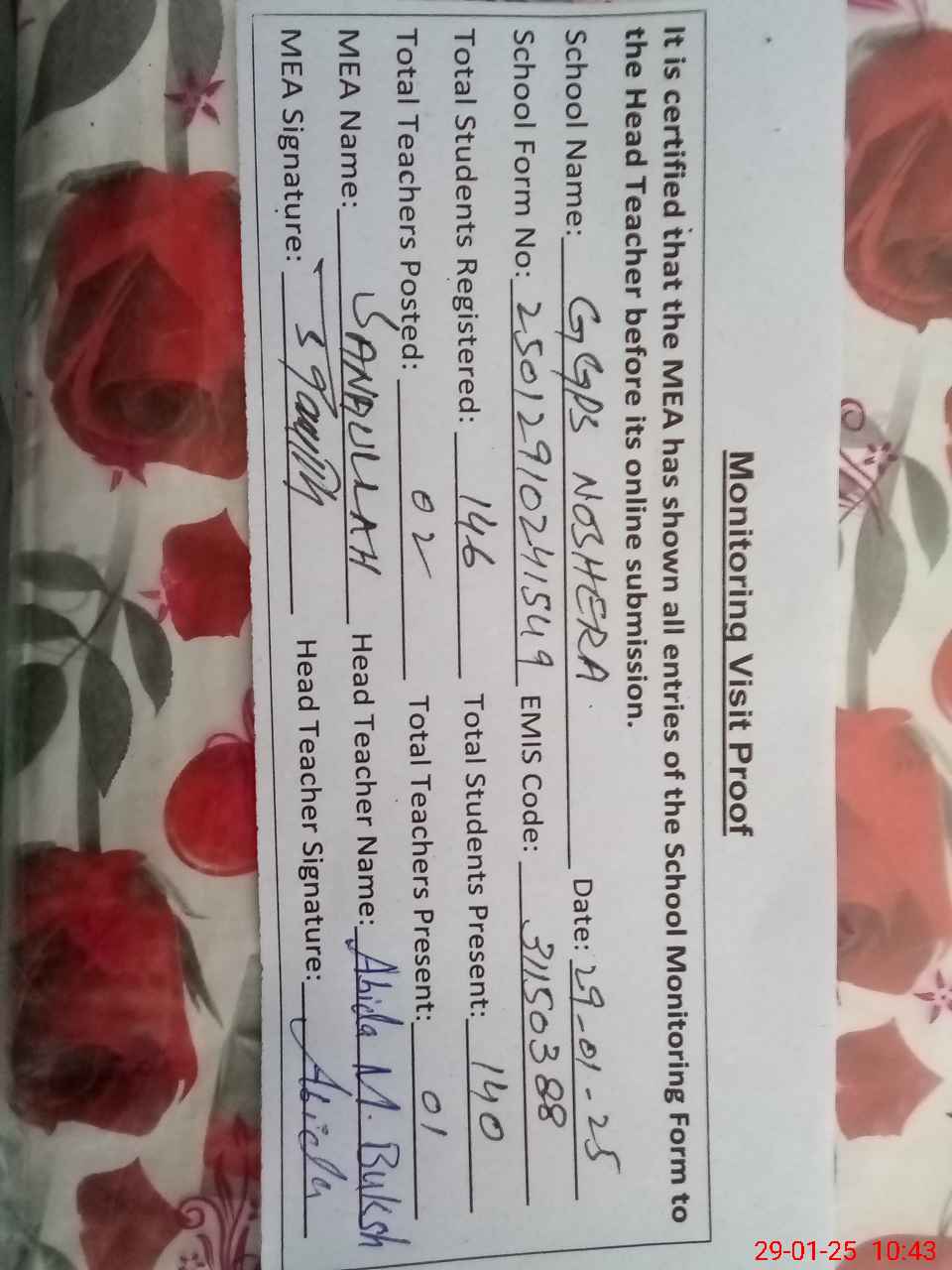 | EMIS Code: 31150388 | Name of School: GGPS NOSHERA | |||
