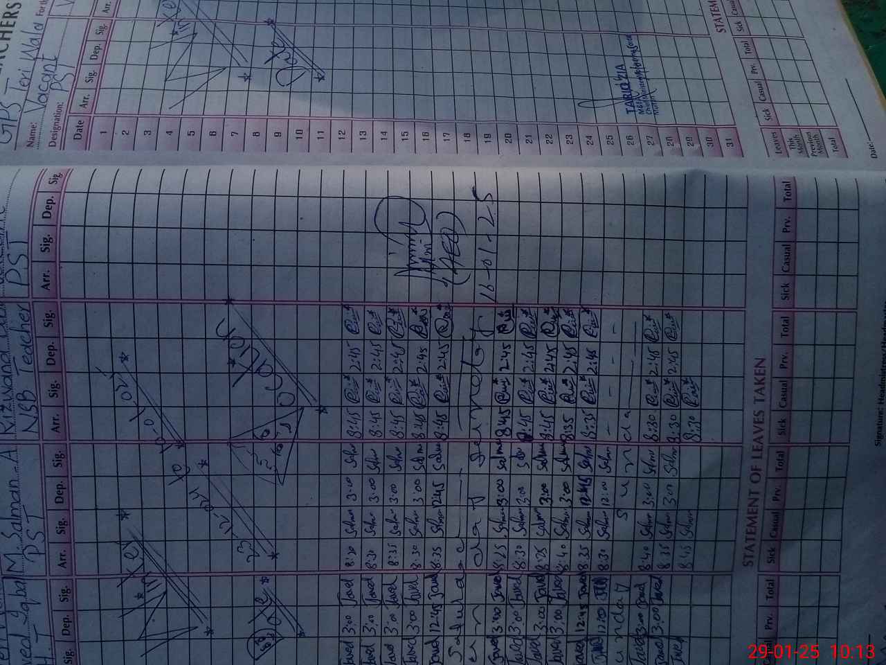| CNIC | Full Name | Designation | R/C | Absence During Last Calender Month |