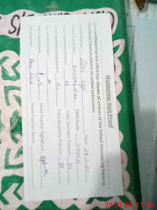 | Certified that this School was Inspected by the Undersigned MEA/DMO Today and the Information Stated Above is as Per Record. | |||||