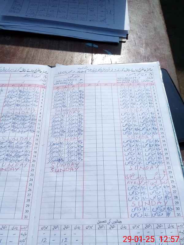 | CNIC | Full Name | Designation | R/C | Absence During Last Calender Month |
