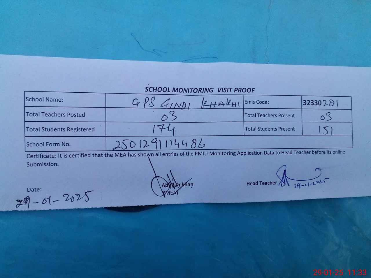 | EMIS Code: 32330281 | Name of School: GPS GINDI KHAKHI | |||