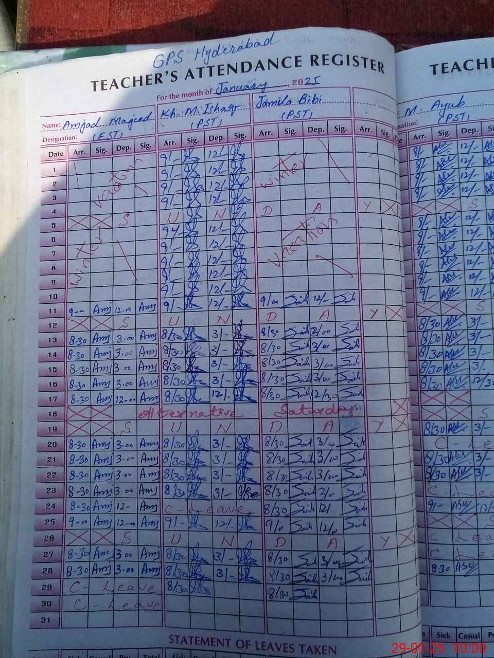 | Leave | Duty | Absent | Maternity | Medical | Ex- Pak |
