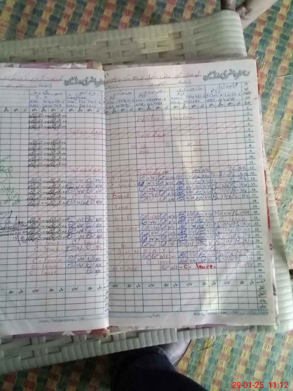 | CNIC | Full Name | Designation | R/C | Absence During Last Calender Month |