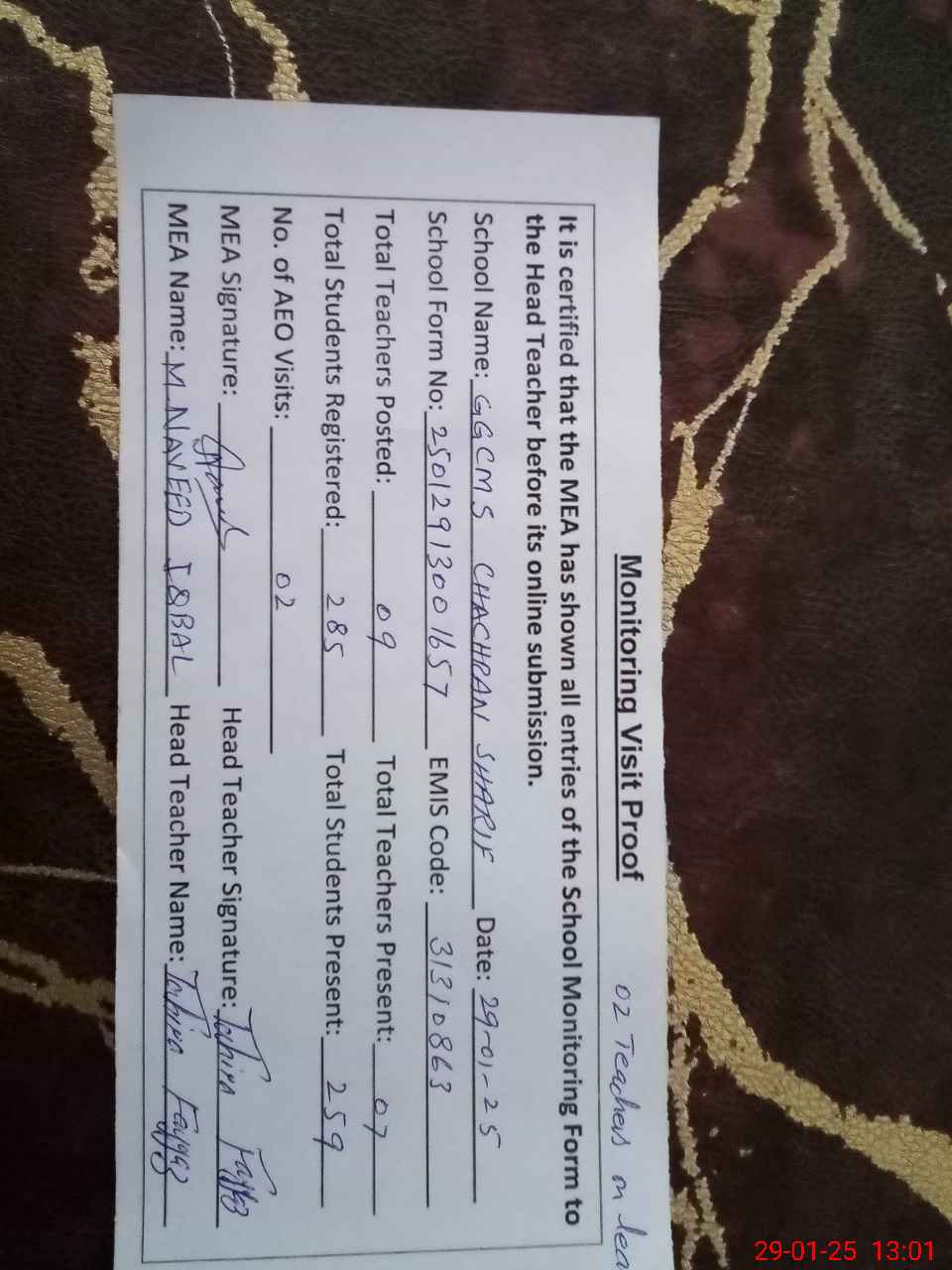 | EMIS Code: 31310863 | Name of School: GGCMS CHACHARAN SHARIF | |||