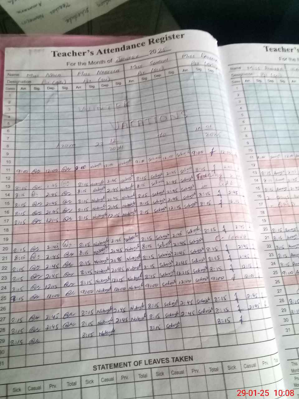| Leave | Duty | Absent | Maternity | Medical | Ex- Pak |
