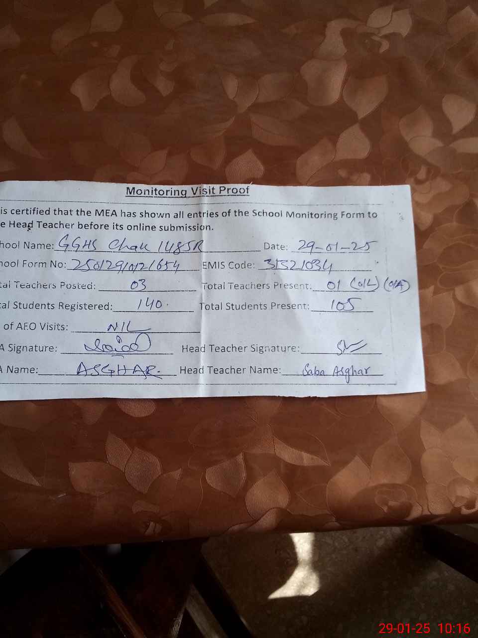| EMIS Code: 31321034 | Name of School: GGHS Chak No 148/5-R | |||