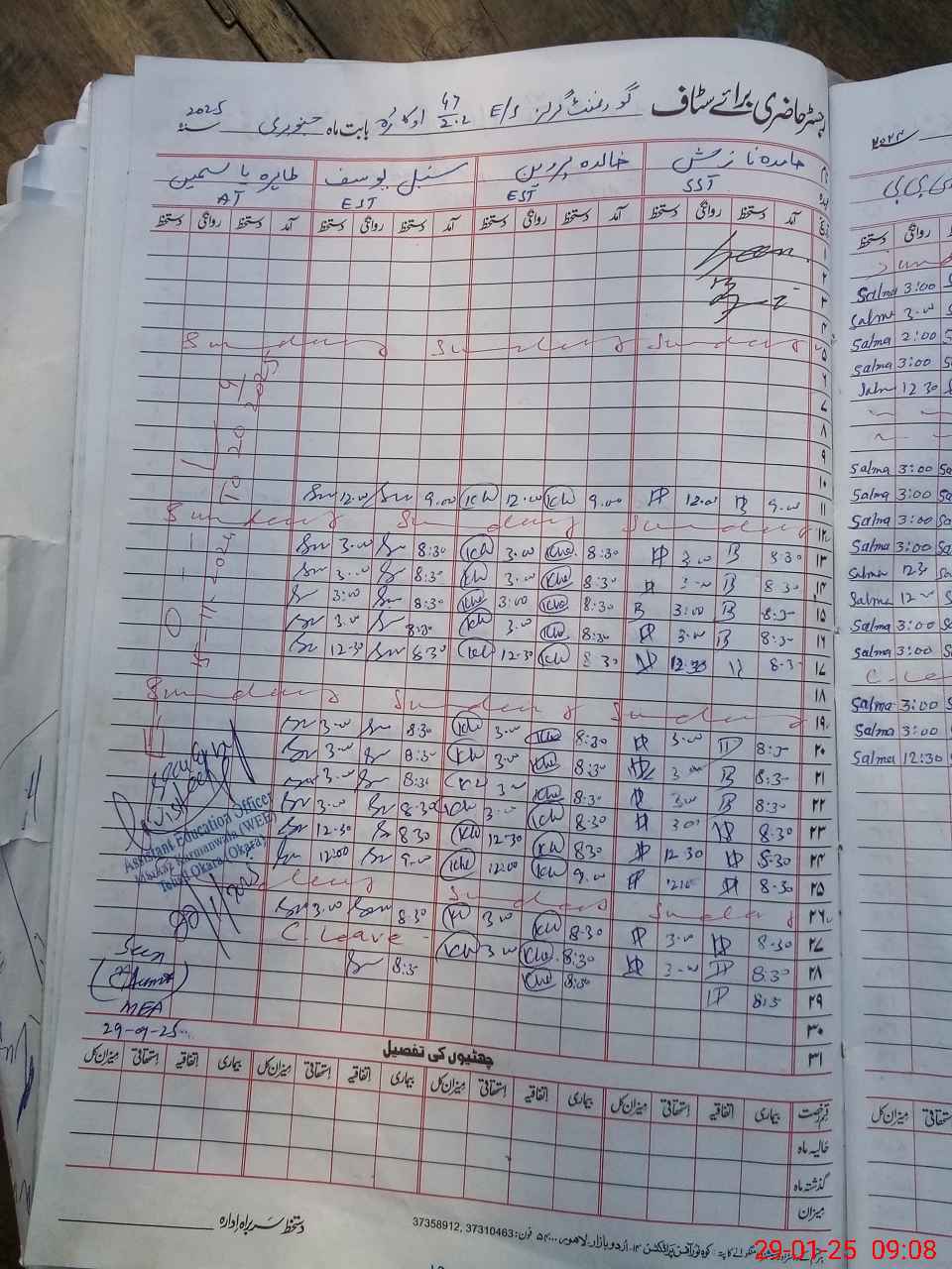 | CNIC | Full Name | Designation | R/C | Absence During Last Calender Month |
