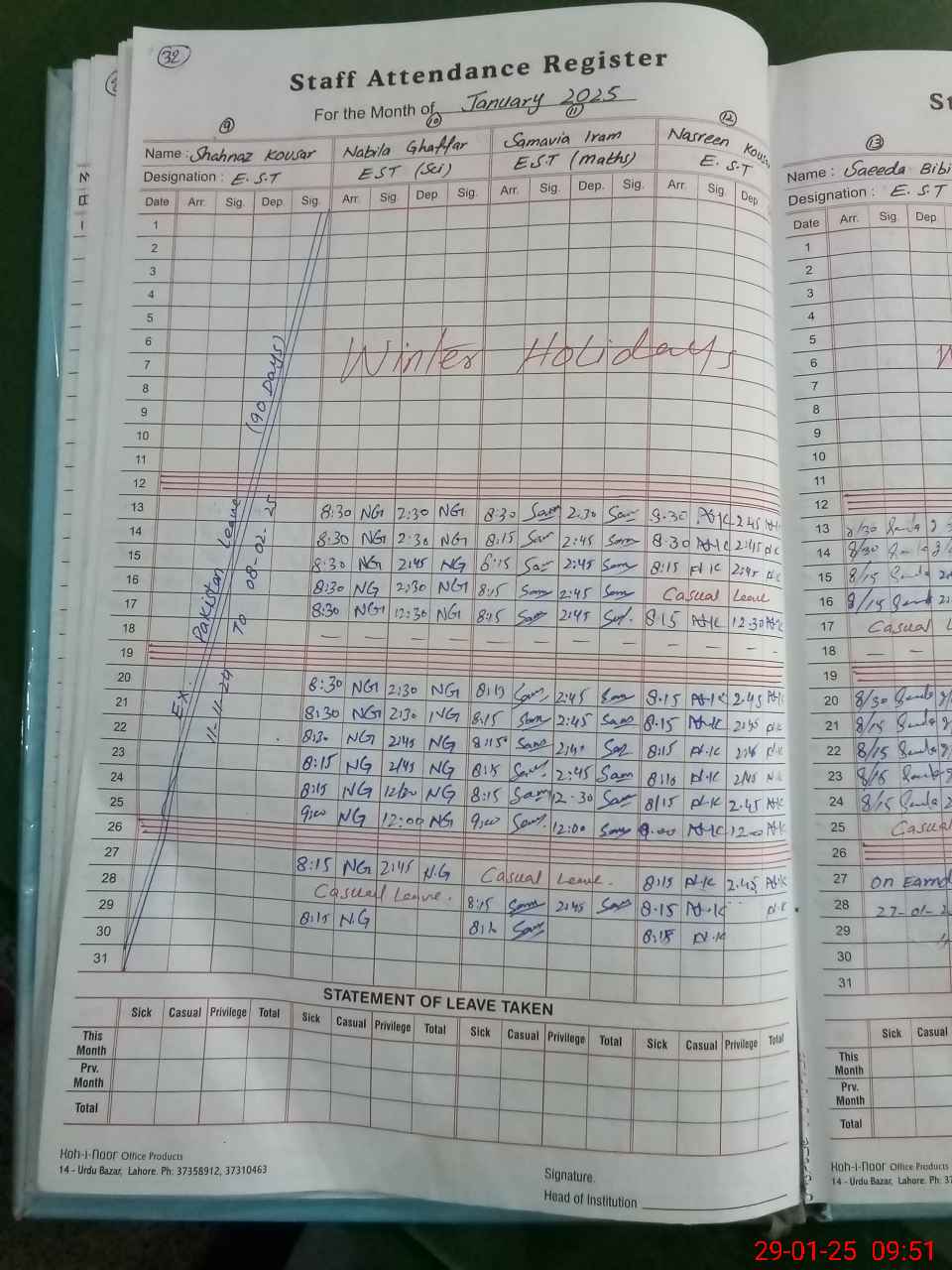 | Leave | Duty | Absent | Maternity | Medical | Ex- Pak |