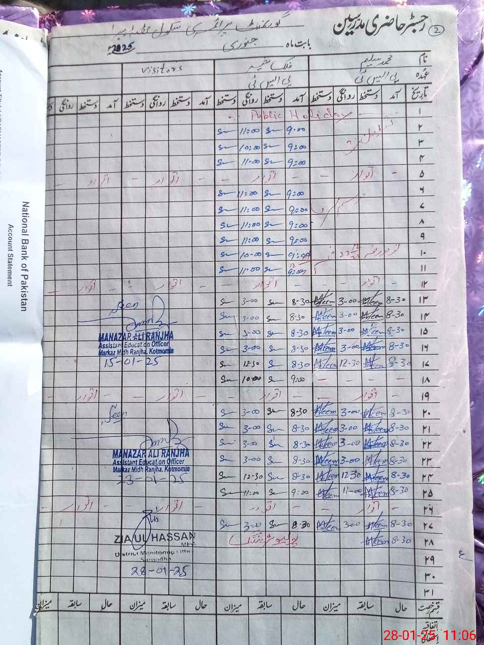 | Name: MU**** SA**** Designation: (School Headmaster's/Headmistress's) PST Phone/Cell Number: 03**** |