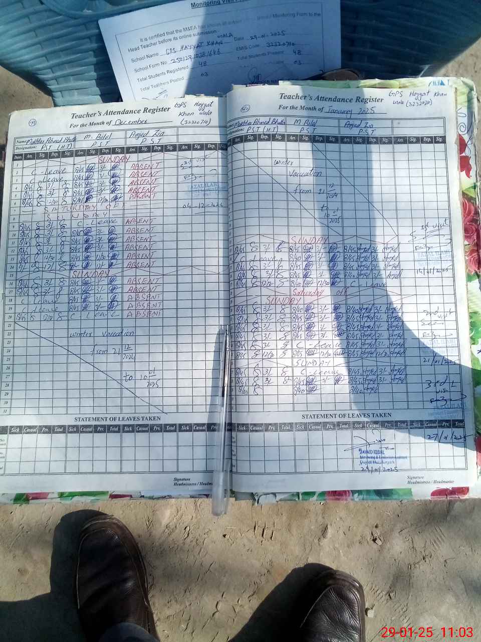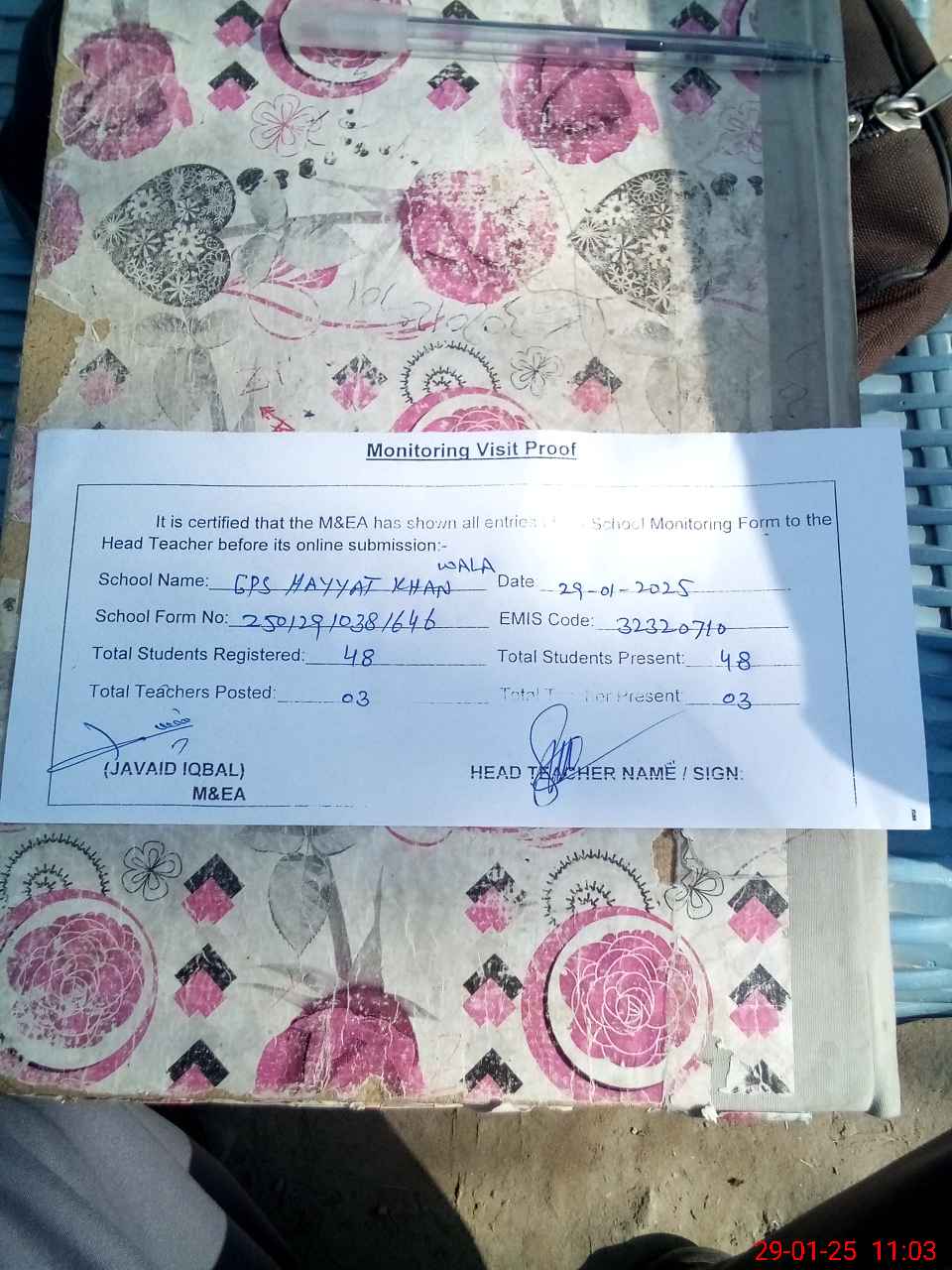 | Attendance Register | Head Teacher | MEA with School | Visit Proof |