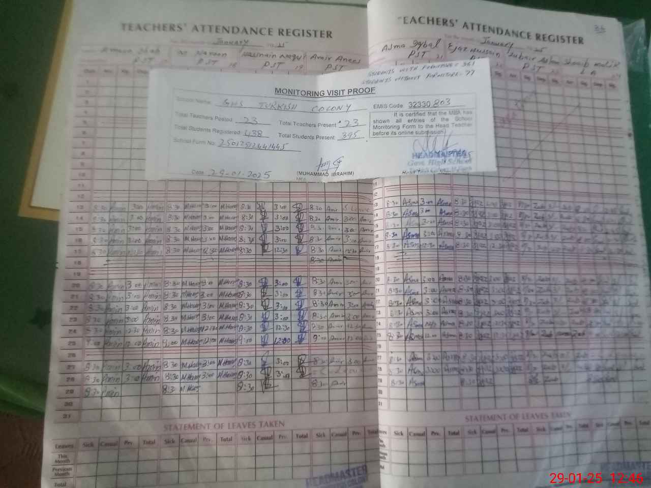 | Attendance Register | Head Teacher | MEA with School | Visit Proof |