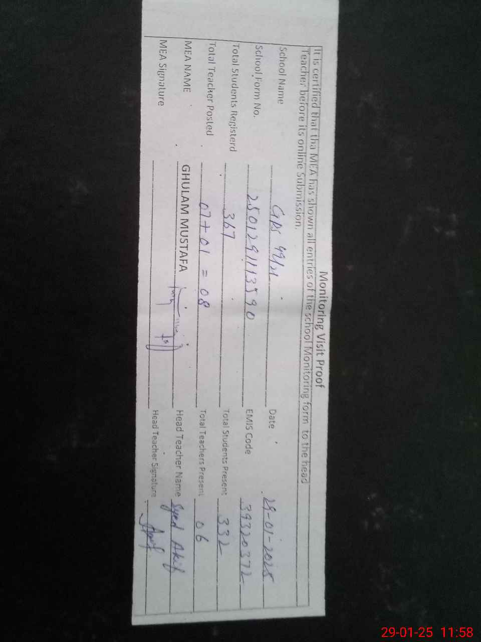 | Certified that this School was Inspected by the Undersigned MEA/DMO Today and the Information Stated Above is as Per Record. | |||||