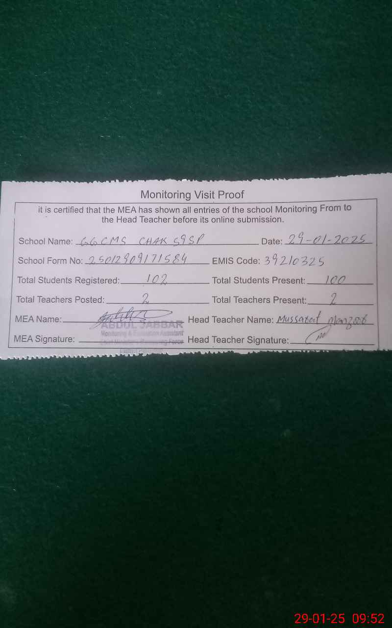 | EMIS Code: 39210325 | Name of School: GGCMS CHAK 59 SP | |||