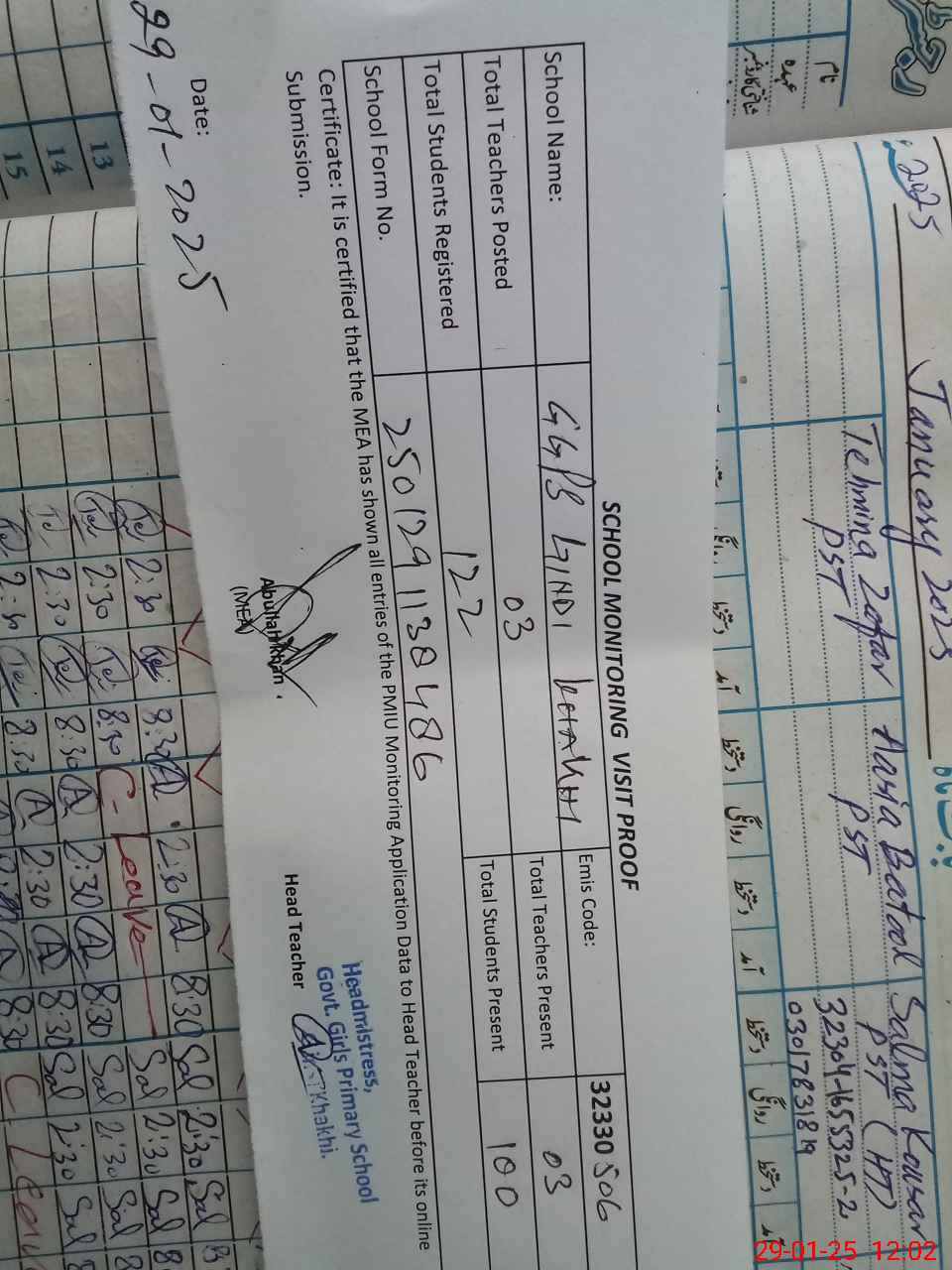 | Name: As**** Ba**** Designation: (School Headmaster's/Headmistress's) PST Phone/Cell Number: 03**** |